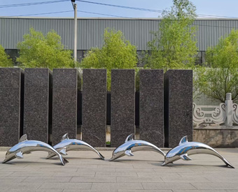 不銹鋼海豚雕塑是比較常見的一種不銹鋼動物雕塑,海豚是一種憨態可掬、親近人類的動物,深受人們的喜愛,常見的不銹鋼海豚雕塑尺寸有0.8米,1米,1.2米1.5米,1.8米的,當然也可以根據需求制作的大一些。