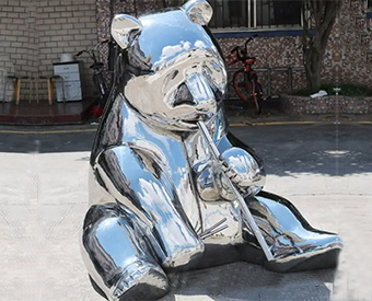 這座不銹鋼大熊貓雕塑,以國寶大熊貓的造型為創作,制造出了憨態可掬,造型獨特,外觀明亮的大熊貓雕塑。這座大熊貓雕塑惹人喜愛的外觀,使其無論放在哪里都將是目光的聚集點。 不銹鋼熊貓雕塑形象生動逼真,加以使用高質量不銹鋼為原材料,使其表面非常光滑,像鏡子一樣明亮。且不銹鋼雕塑又具有不易生銹、易清潔、經久耐用的特性,在室外也不容易變形和褪色,非常適合放于室外做裝飾。
