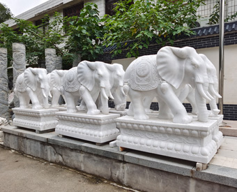 大象是一種高大威猛的動物,但是它的性情比較溫和,所以也深受人們的喜愛,石雕大象也代表著強大、和平、吉祥、幸福美滿的寓意,石雕大象具有聚財、招財、守財的作用,所以很多商鋪、酒店門口都會擺放一對石雕大象,除此之外,石雕大象還有裝飾作用,擺在門口顯得很有氣勢。