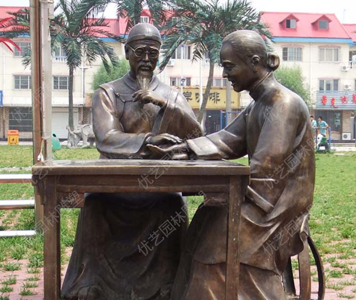 鑄銅景觀小品人物雕塑是人物雕塑的一個重要分支,銅景觀小品人物主要是指帶有觀賞性的小品人物雕塑,鑄銅景觀小品人物雕塑來源于生活,卻能給人比生活本身更完美的欣賞價值和趣味性,在美化環境的同時,還能陶冶人們的情操,賦予環境鮮活的主題、豐富的精神內涵和藝術美感。